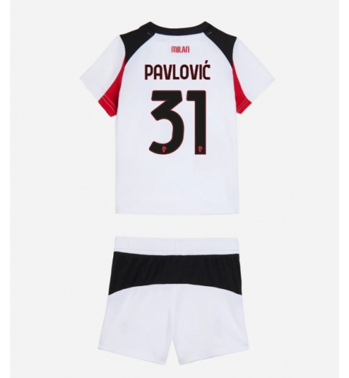 Strój piłkarski AC Milan Strahinja Pavlovic #31 Koszulka Wyjazdowej dziecięce 2025-26 Krótki Rękaw (+ Krótkie spodenki)