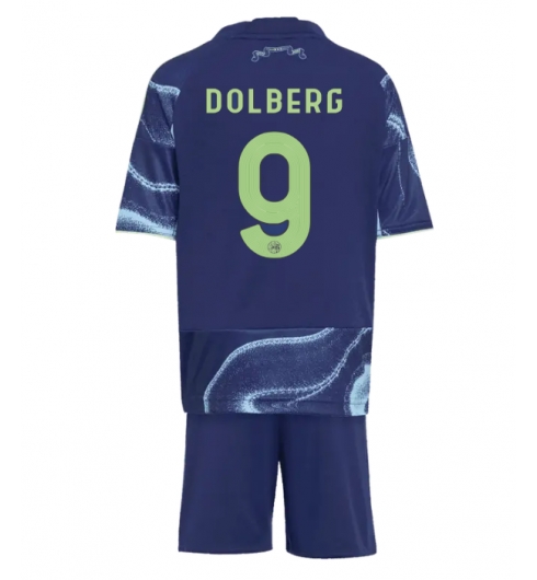Strój piłkarski Ajax Kasper Dolberg #9 Koszulka Wyjazdowej dziecięce 2025-26 Krótki Rękaw (+ Krótkie spodenki)