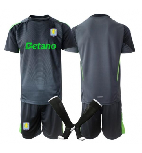 Strój piłkarski Aston Villa Bramkarskie Koszulka Podstawowej dziecięce 2025-26 Krótki Rękaw (+ Krótkie spodenki)