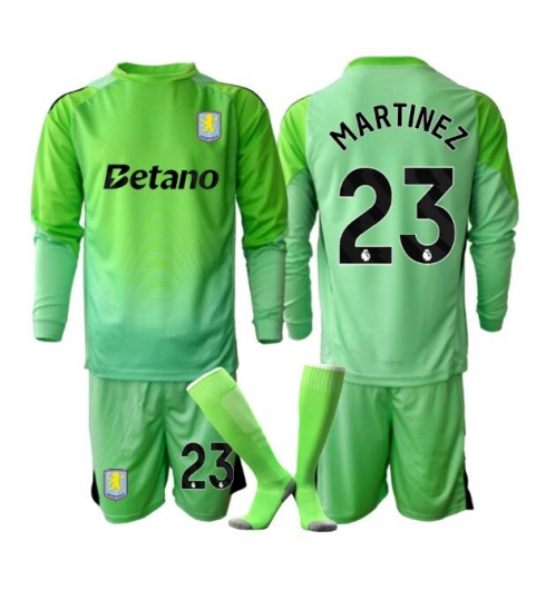 Strój piłkarski Aston Villa Emiliano Martinez #23 Bramkarskie Koszulka Wyjazdowej dziecięce 2025-26 Długi Rękaw (+ Krótkie spodenki)