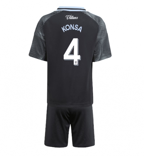 Strój piłkarski Aston Villa Ezri Konsa #4 Koszulka Wyjazdowej dziecięce 2025-26 Krótki Rękaw (+ Krótkie spodenki)