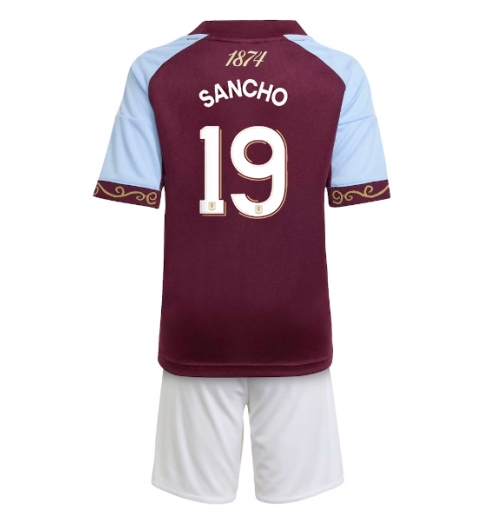 Strój piłkarski Aston Villa Jadon Sancho #19 Koszulka Podstawowej dziecięce 2025-26 Krótki Rękaw (+ Krótkie spodenki)