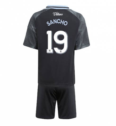 Strój piłkarski Aston Villa Jadon Sancho #19 Koszulka Wyjazdowej dziecięce 2025-26 Krótki Rękaw (+ Krótkie spodenki)