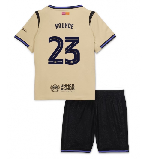 Strój piłkarski Barcelona Jules Kounde #23 Koszulka Wyjazdowej dziecięce 2025-26 Krótki Rękaw (+ Krótkie spodenki)