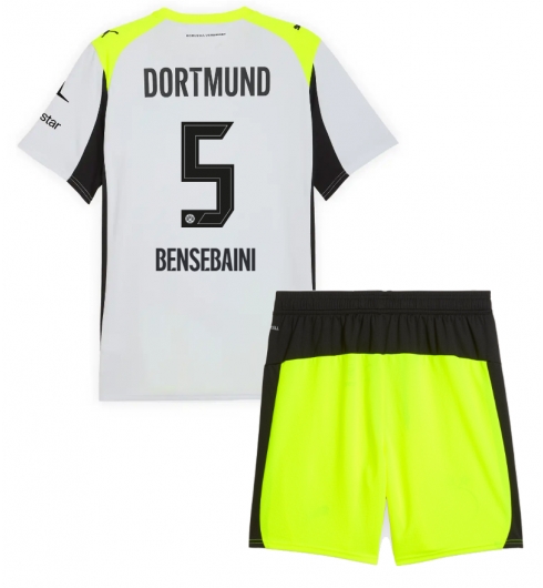 Strój piłkarski Borussia Dortmund Ramy Bensebaini #5 Koszulka Wyjazdowej dziecięce 2025-26 Krótki Rękaw (+ Krótkie spodenki)