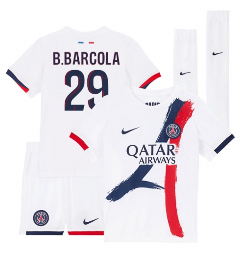 Strój piłkarski Paris Saint-Germain Bradley Barcola #29 Koszulka Wyjazdowej dziecięce 2025-26 Krótki Rękaw (+ Krótkie spodenki)